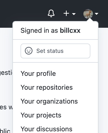 click your avatar in the upper right corner, the word after Signed in as is your account username